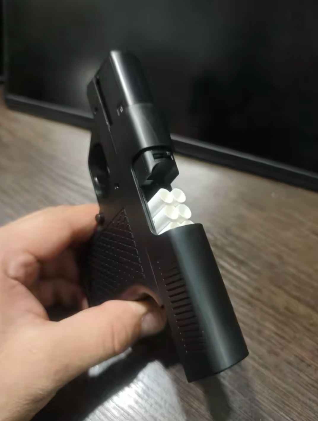 t’s a compact torch lighter designed with a mini-pistol style for a clean, modern look. It also includes a small built-in cigarette slot for extra convenience on the go.